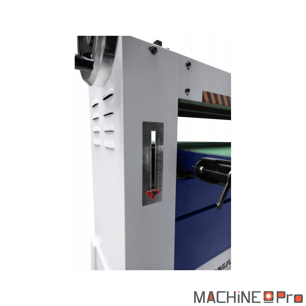 La meuleuse/ponceuse à tambour CORMAK MM3166P (400 V) est une machine robuste conçue pour le ponçage précis du bois et des matériaux dérivés. Dotée de deux rouleaux de ponçage de 150 mm de diamètre, elle offre une largeur de travail de 635 mm, ce qui en fait un choix idéal pour les productions en série nécessitant une finition de haute qualité. Équipée d’un moteur principal de 2,2 kW et d’un moteur de transport de 120 W, cette meuleuse peut atteindre une vitesse de ponçage de 7,3 m/min, permettant d'adapter le rythme de travail à divers matériaux. Le système de transport par bande assure un passage fluide de la pièce tout en optimisant la précision du ponçage. Sa construction en acier robuste procure une grande stabilité et réduit les vibrations, assurant des résultats de ponçage cohérents et de qualité. Avec une capacité de traitement allant jusqu’à 130 mm d’épaisseur de matériau, elle convient parfaitement aux ateliers de menuiserie, aux fabricants de meubles et aux entreprises produisant des composants en bois.